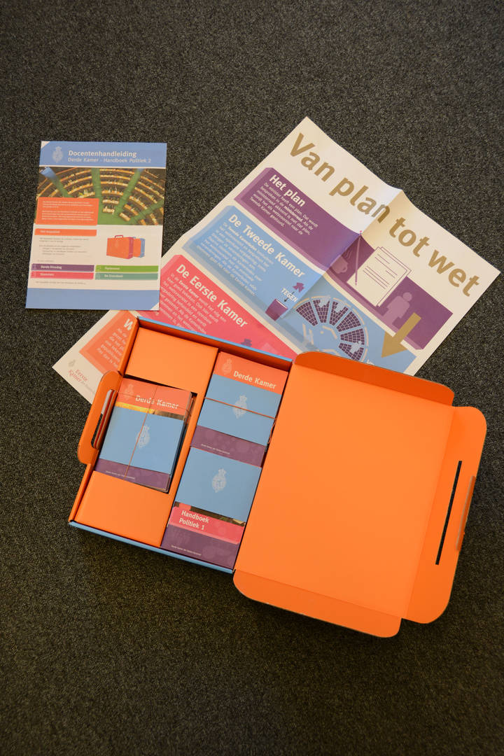 Leren over het werk van de Eerste en Tweede Kamer. Dat kan met het leskoffertje van de Derde Kamer, bedoeld voor leerlingen van groep 7 en 8 van de basisschool. Dinsdag 13 september werd aan Eerste Kamerleden en Tweede Kamerleden een leskoffertje beschikbaar gesteld.