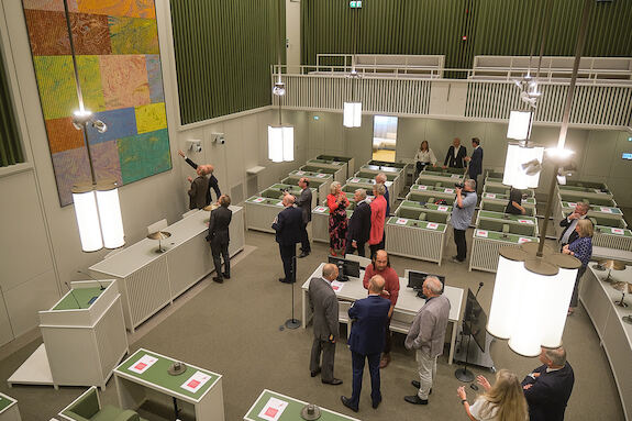 Dinsdag 14 september is in de plenaire zaal van de tijdelijke huisvesting van de Eerste Kamer het centrale kunstwerk onthuld door Eerste Kamervoorzitter Jan Anthonie Bruijn en beeldend kunstenaar Navid Nuur. Het is een kleurrijk werk van acryl op aluminium dat vanuit verschillende perspectieven anders oogt en ook het aantal leden van de Kamer symboliseert.