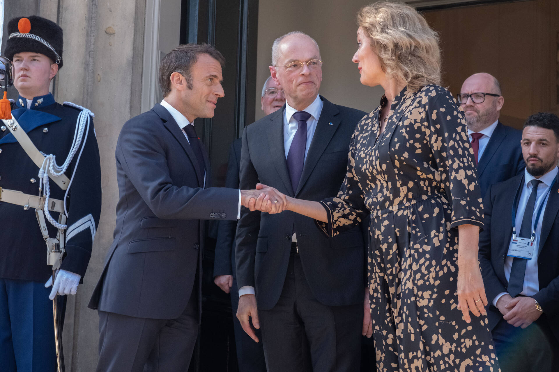 De Voorzitters van Eerste en Tweede Kamer ontvingen dinsdag 11 april de president van Frankrijk, Emmanuel Macron. Macron is in Nederland voor een tweedaags staatsbezoek. Eerste Kamervoorzitter Jan Anthonie Bruijn en Tweede Kamervoorzitter Vera Bergkamp ontvingen de president in de Eerste Kamer in Den Haag.