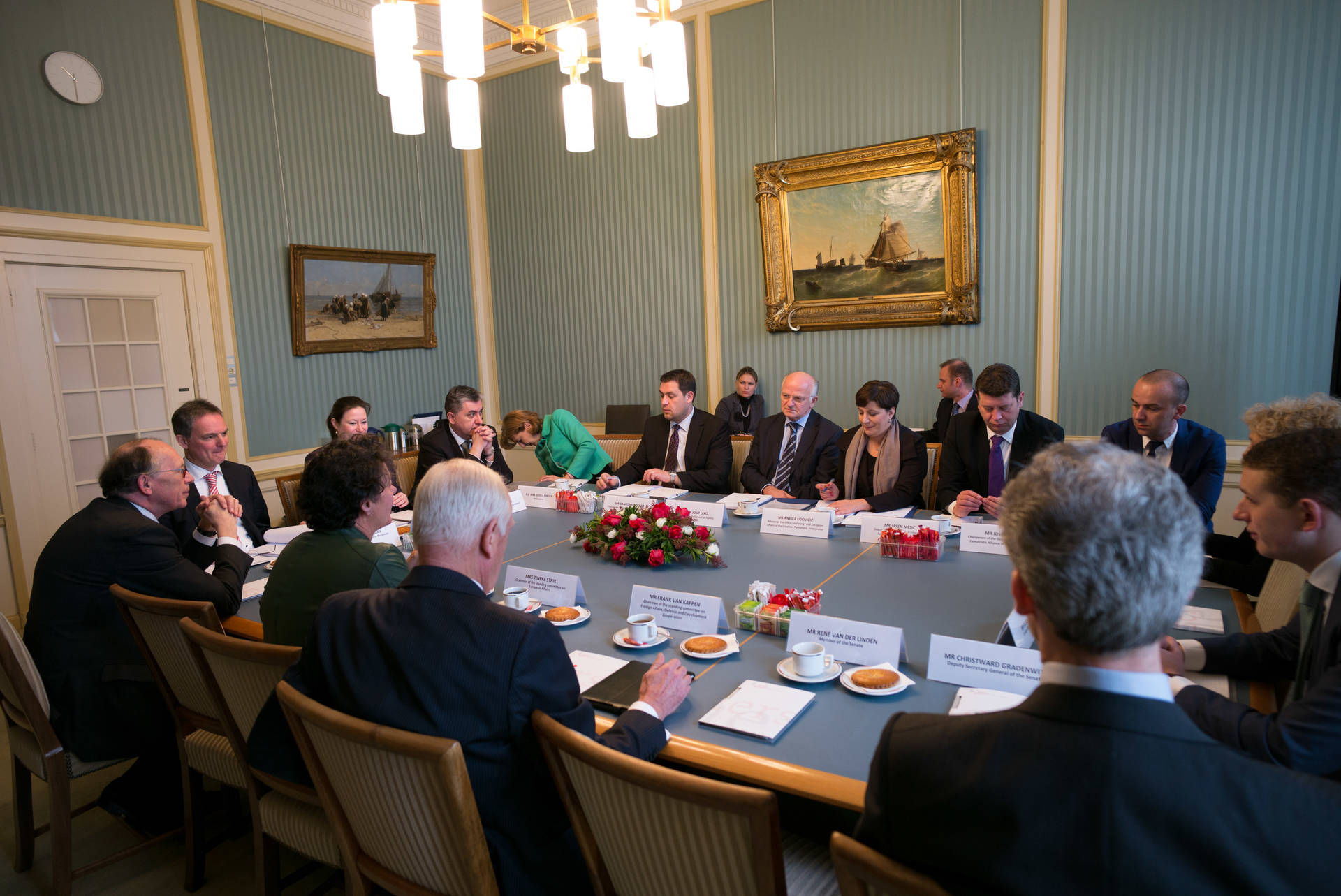 Op 11 maart ontvingen de commissies Europese Zaken (EUZA) en Buitenlandse Zaken, Defensie en Ontwikkelingssamenwerking (BDO) van de Eerste Kamer de Kroatische delegatie. Er is gesproken over de recente toetreding van Kroatië tot de EU en de uitdagingen waar een nieuwe lidstaat voor staat. Voorts kwamen de verhouding tussen de regering, het nationale en het Europese Parlement aan de orde. Er werd onder andere van gedachten gewisseld over de toepassing van het subsidiariteitsbeginsel, het werkprogramma van de Europese Commissie en de implementatie van het Europees semester in de procedures van nationale parlementen. Kroatië wil als relatief nieuw EU-lid leren van Nederlandse ervaringen. Ook het EU buitenlandbeleid en de Kroatische regio zijn kort aangestipt. Deze bijeenkomst bevestigde opnieuw de goede relatie tussen beide landen. Na afloop woonde de Kroatische delegatie de opening bij van de plenaire vergadering van de Eerste Kamer, die die dag debatteerde over de democratische rechtsstaat. Parlementsvoorzitter Leko werd daarbij welkom geheten door Kamervoorzitter Broekers-Knol. Vervolgens sprak de delegatie in de Tweede Kamer met leden van de commissie Europese Zaken en werd zij in de plenaire vergadering van de Tweede Kamer verwelkomd door Voorzitter Van Miltenburg. De delegatie bracht verder onder meer een bezoek aan Amsterdam en Aalsmeer.
