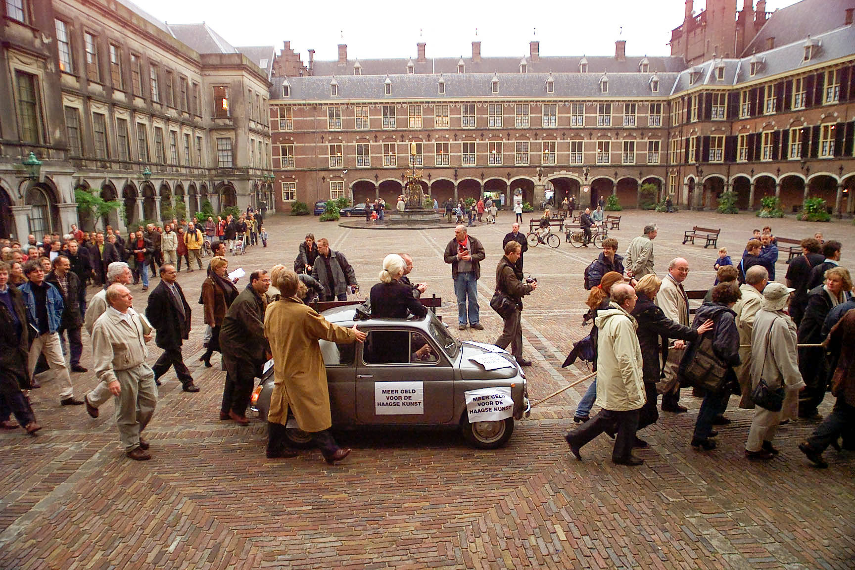 In 1968 gooiden demonstranten tijdens een herdenking van de slachtoffers van de Russische inval in Tsjecho-Slowakije tientallen papieren naar beneden met daarop de tekst 'hypocriete kruideniermentaliteit van de Nederlanders'. Een jaar later verstoorde een leraar het begrotingsdebat van Defensie door op de tribune zijn oproep voor militaire dienst te verbranden. In 1971 protesteerde een Haagse oorlogsinvalide tegen de pensioenregeling voor oorlogsslachtoffers door zijn zes kilo zware kunstbeen de zaal in te gooien.